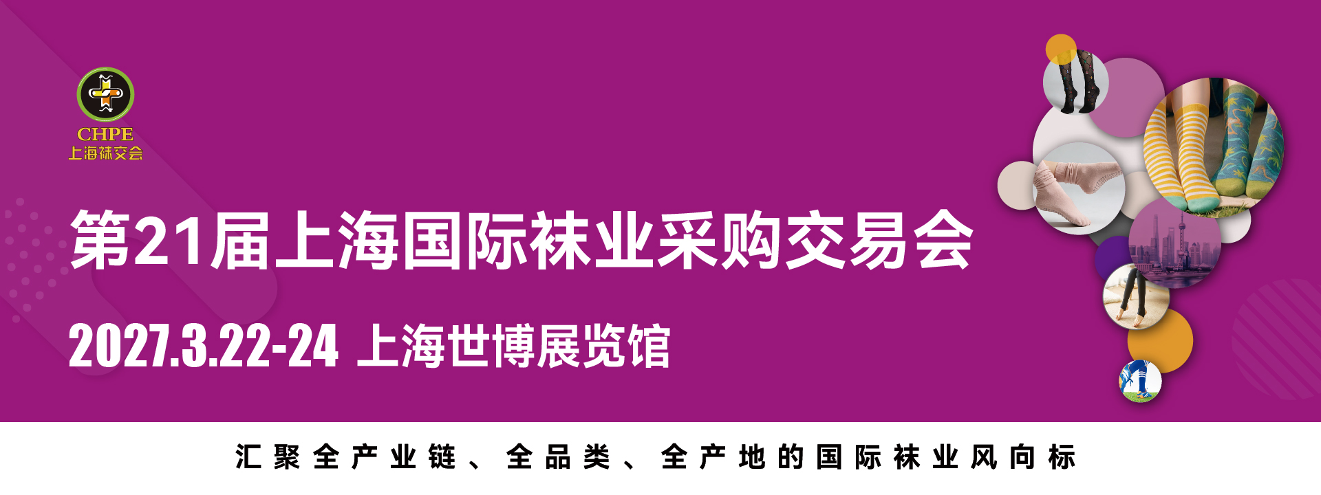 上海国际袜业采购交易会Shanghai International Hosiery Purchasing Expo(简称:上海袜交会CHPE),自2005年创办以来已连续成功举办20届,被誉为“全球袜子领域旗舰展”。作为中国规模盛大、久负盛名的时尚细分领域商贸型展会,上海袜交会已发展成为中国乃至全球袜企新品首发、渠道拓展、跨界合作、技术交流的专业首选平台,并且一直依据行业和市场的变化不断创新,和中国袜子品牌共同成长的同时引领着行业的发展。